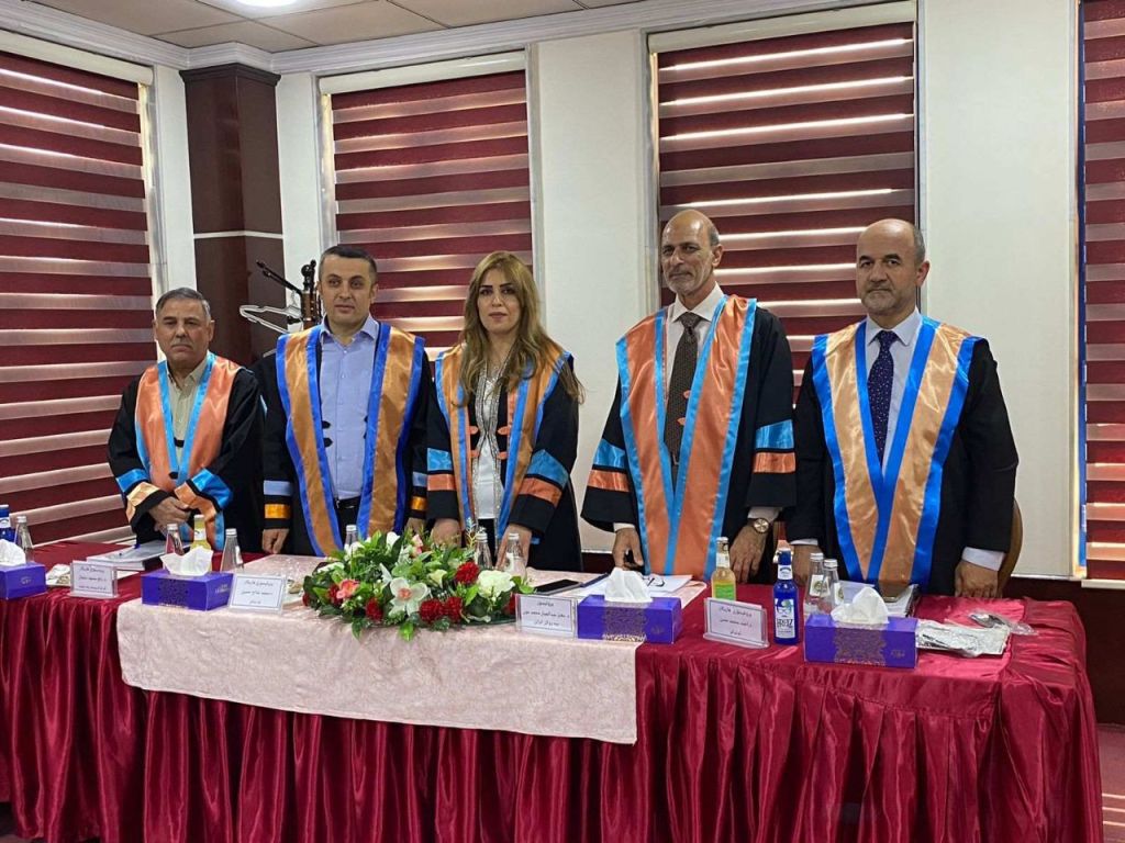 ترأس لجنة المناقشة الاستاذ المساعد الدكتورة كميلة احمد عبد الستار، وعضوية كل من الاستاذ المساعد غادة محمد يونس، و المدرس الدكتور بسام احسان عبد القادر، وباشراف وعضوية الاستاذ المساعد الدكتورة خولة فياض محمود.