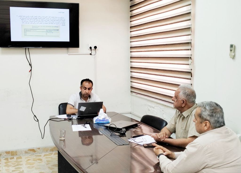 ترأس لجنة المناقشة الاستاذ المساعد الدكتور ناهض طه القيماقجي/ جامعة جيهان- السليمانية، وعضوية كل من الاستاذ المساعد الدكتور عمر حازم خروفة/ رئيس قسم هندسة العمارة، و المدرس الدكتور عمر عادل صباح، وباشراف وعضوية الاستاذ المساعد الدكتورة اسماء حسن الدباغ.