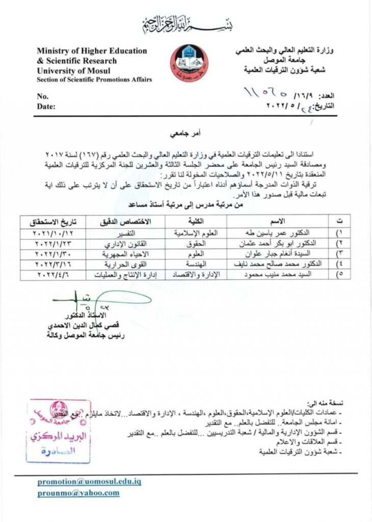 وأبدى الطرفين رغبتها في التعاون بما يخدم المسيرة العلمية وتعزيز دور جامعة الموصل في خدمة المجتمع.