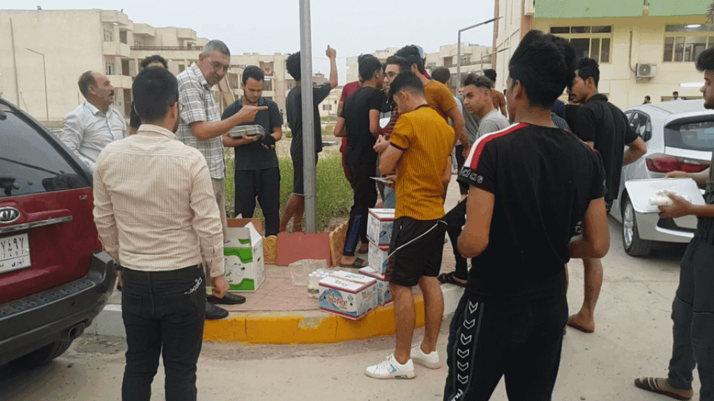 حيث تم توزيع وجبات الافطار على الطلبة الساكنين في مجمع الفاروق بالجانب الايمن والطلبة الساكنين في مجمع ابن خلدون والطالبات الساكنات في مجمع الحدباء داخل الحرم الجامعي، وبدورهم ثمن الطلبة هذه المبادرة في هذا الشهر الفضيل التي قامت بها الكلية من اجل تعزيز اواصر المحبة والتواصل مع الطلبة.