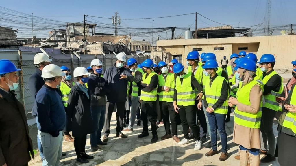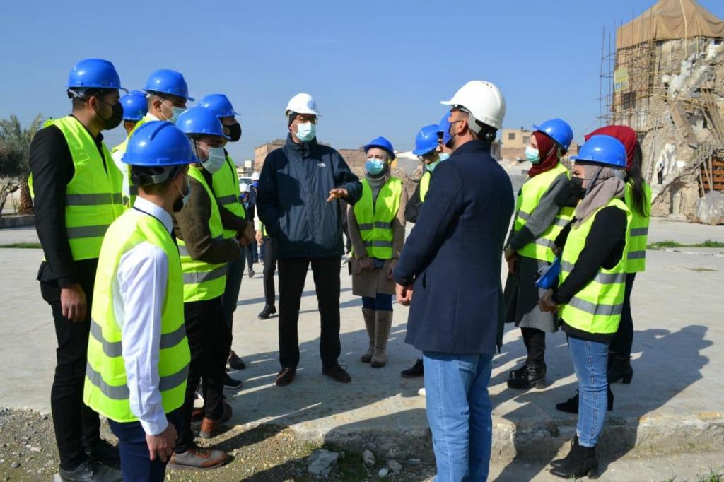 طلبة كلية الهندسة على ارض الجامع النوري ومنارة الحدباء في ختام ورشة علمية مشتركة