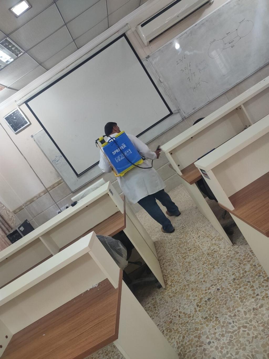 على طريق حماية طلبتنا من مخاطر كوروناجرت في كلية الهندسة بجامعة الموصل اعمال التعفير اللازمة لتطهير قاعات الكلية المخصصة لامتحانات الدراسات العليا بهدف حماية ابنائنا الطلبة من مخاطر العدوى او الاصابة بمرض كورونا