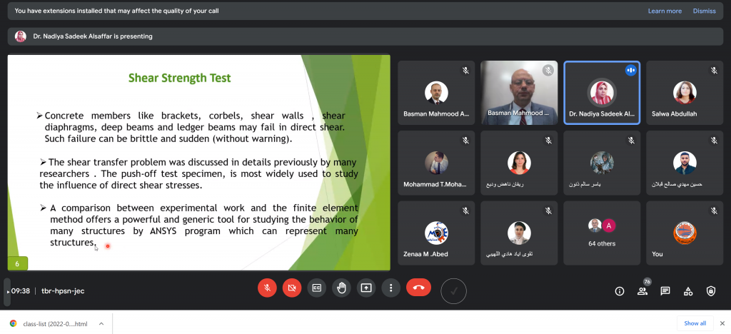 استمرت فعاليات اسبوع كلية الهندسة 2022 لهذا اليوم على الرغم من سوء الاحوال الجوية وتعطيل الدوام، ولكن بشكل الكتروني وعلى منصة meet، وبتعديل بسيط على الاجندة المطروحة لتكون الفعاليات جميعها من نوع المحاضرات لتتوائم مع اسلوب العرض الالكتروني.