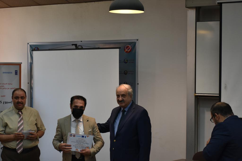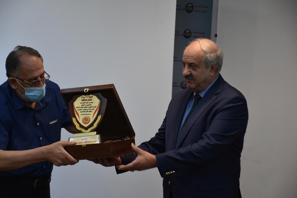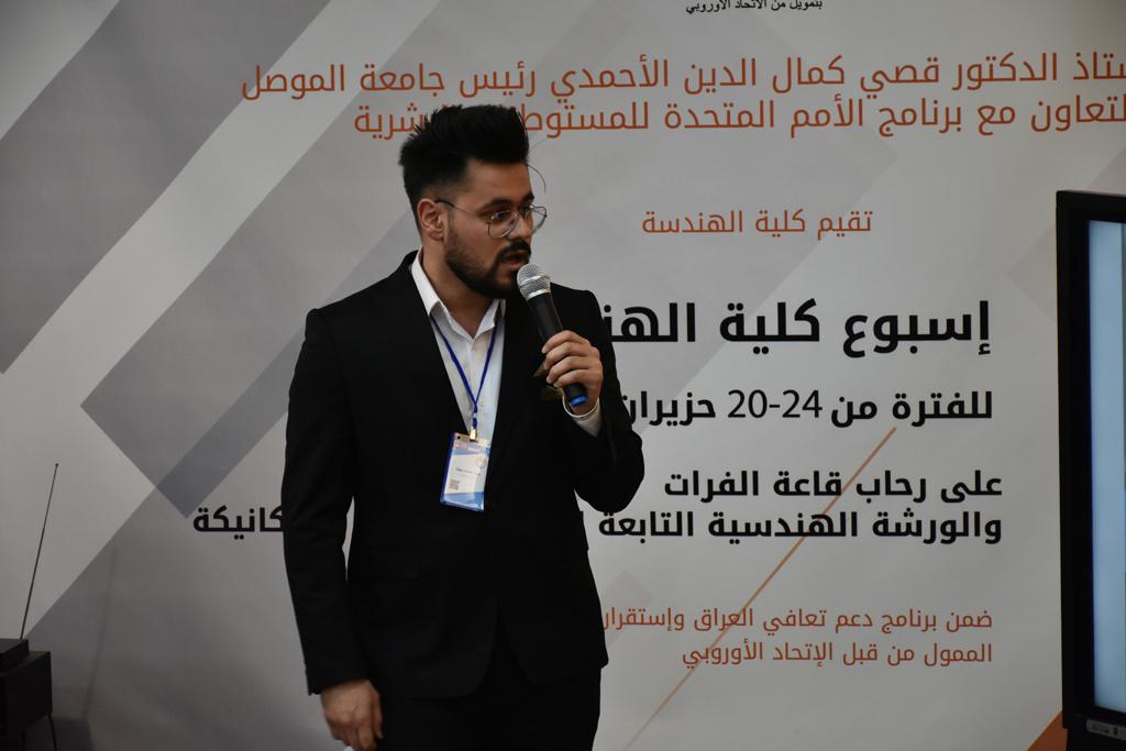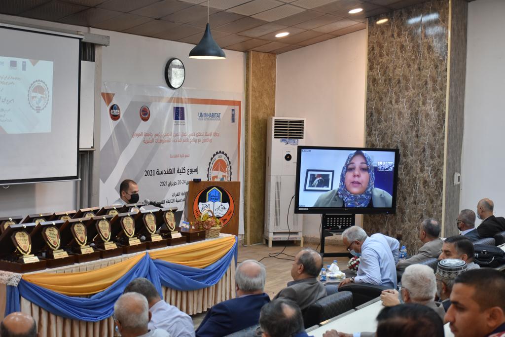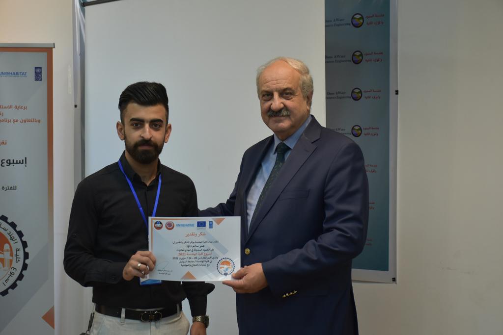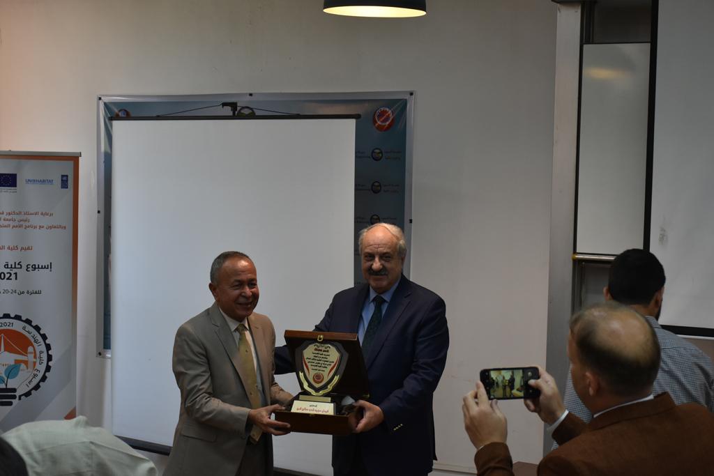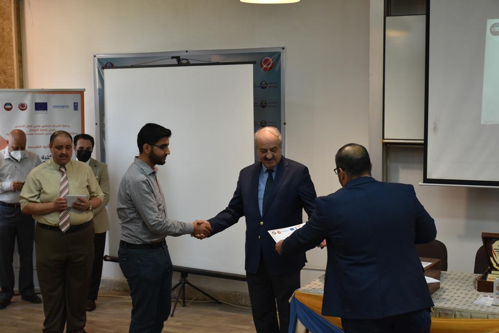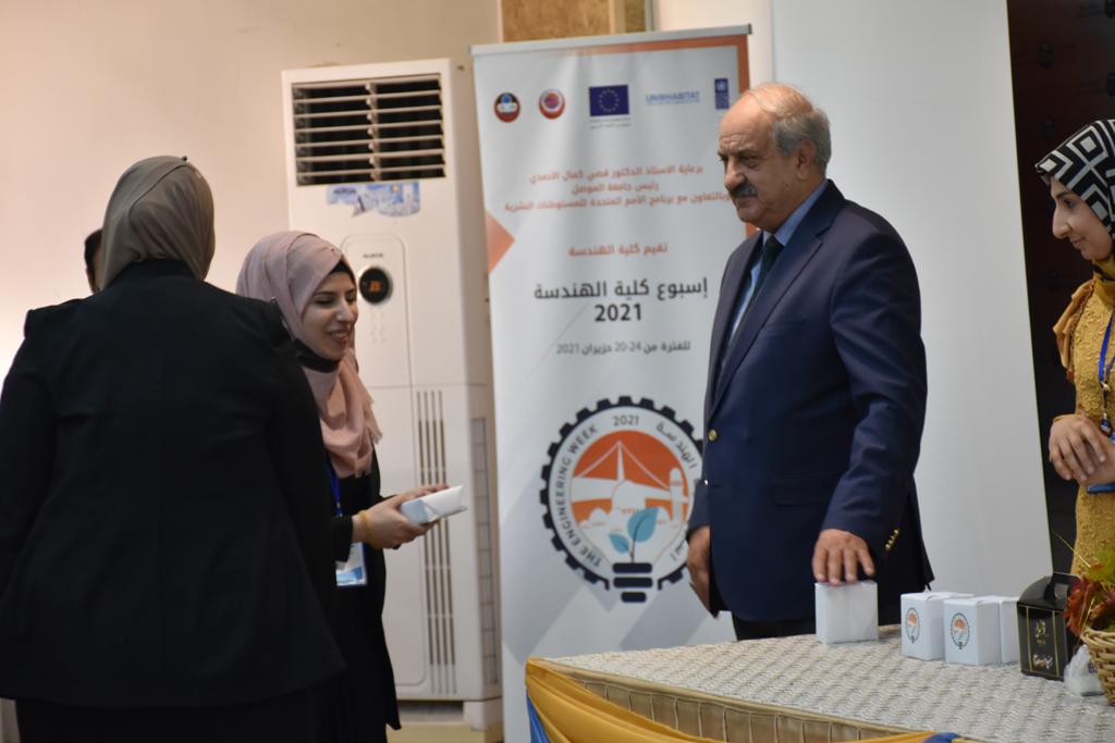 بدأت فعاليات اليوم الخامس بمحاضرة لمسؤولين من المكتب الاستشاري الهندسي هما الدكتور سعد زغلول والدكتور عدي عسل بعنوان “دور المكتب الاستشاري في المشاريع الهندسية واهميته في تطوير الخبرات وامكانيات الكادر التدريسي”. تبعتها كلمة ترحيبية الكترونية من قبل السيدة غادة حميد ممثلة الاتحاد الأوربي أشادت فيها بفعاليات الأسبوع وتمنت فيها المزيد من التعاون بين الكلية والاتحاد.عند الساعة العاشرة والنصف بدأت فعاليات التكريم لنخبة من التدريسيين المتقاعدين بحضورهم او من ينوب عنهم حيث قدم عميد كلية الهندسة الاستاذ الدكتور بيار جعفر السليفاني درع تكريم وفاءً لمسيرتهم الإدارية والتدريسية الطويلة. وهم كل من:الاستاذ المساعد محمد سليمان حسن ابراهيم الغبشةالدكتور قيدار مجيد قدو صالح قبعالدكتور ضياء علي بشير محمد النعمةالاستاذ الدكتور فاروق خليل عموري عبد الله العموريالدكتورة ايمان حازم شيت بهنامالدكتور طارق عبد الله خلفالدكتور مؤيد سعدالله خليل حياويالاستاذ الدكتور عبد الحكيم حامد احمد العزوالاستاذ الدكتور علي حيدر سعد علي الجميلالاستاذ الدكتورة حفصة رمزي محمد صديق العمريالدكتور مظفر انور النعمةالدكتور ثامر صابر يونسالاستاذ الدكتور برهان محمود احمد حسين العليالاستاذ الدكتور سعد علي حسن احمد الطعانالاستاذ الدكتور خالد عبد العزيز عبد الفتاح حسن زكريااعقبها قيام السيد العميد أيضا بتكريم أفراد المنظمة المساهمة في هذا الحدث برئاسة السيدة اننا سوافي، ثم من ينوب عن الشركات المشاركة في المعرض المفتوح ثم اللجنة التحضيرية والفرعية المنجزة لاسبوع كلية الهندسة 2021 ثم تكريم للتدريسيين والموظفين المتميزين في عمادة كلية الهندسة وكل الأقسام ثم تكريم الفائزين بالمراتب الثلاث الأولى في منافسات مسابقة الشطرنج.الفقرة الأخيرة كانت فعالية طلابية في قاعة الفرات بدأت بإستكمال مسابقة المعلومات العامة حيث كان المتسابقون من هندسة البيئة والهندسة الكهربائية، حيث فاز فريق هندسة البيئة وتم تكريمهم بجوائز.اعقبها المسابقة النهائية لمشاريع التخرج لأقسام كلية الهندسة حيث كانت المسابقة ترشيح أفضل اثنين او ثلاثة من المشاريع المشاركين بالمعرض المفتوح.المسابقة كانت ثلاث دقائق فقط لكل مشروع ليتم عرضه للجنة التحكيم ويعقبها سؤالين فقط من قبل اللجنة والجمهور ليتم معرفة قدرة الطلبة وقابليتهم على الشرح والايضاح ليتم فوز مجموعة من المشاريع بمجموعة من النقاط المحددة من قبل لجنة التحكيم بجوائز عددها عشرون جائزة.وبهذا انتهت فعاليات أسبوع كلية الهندسة 2021 بتوفيق من الله.