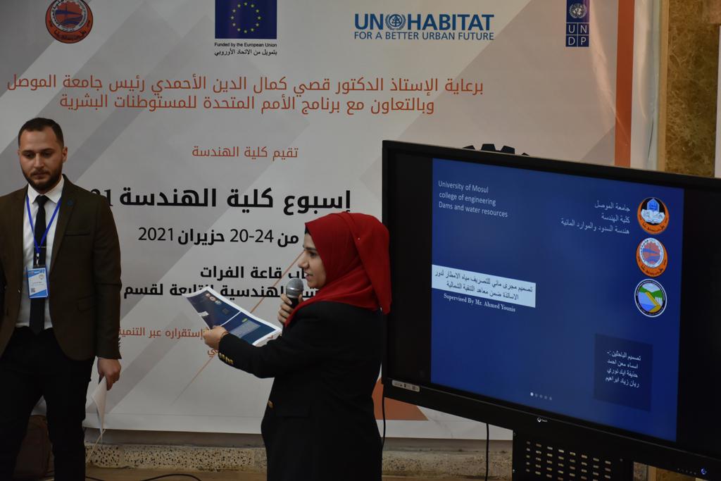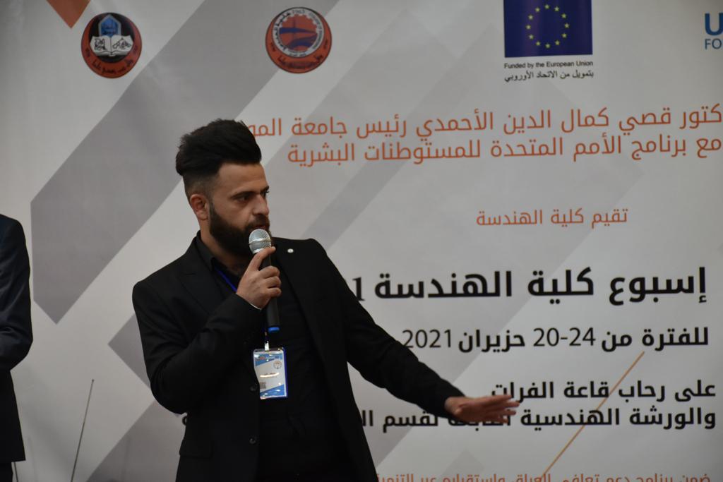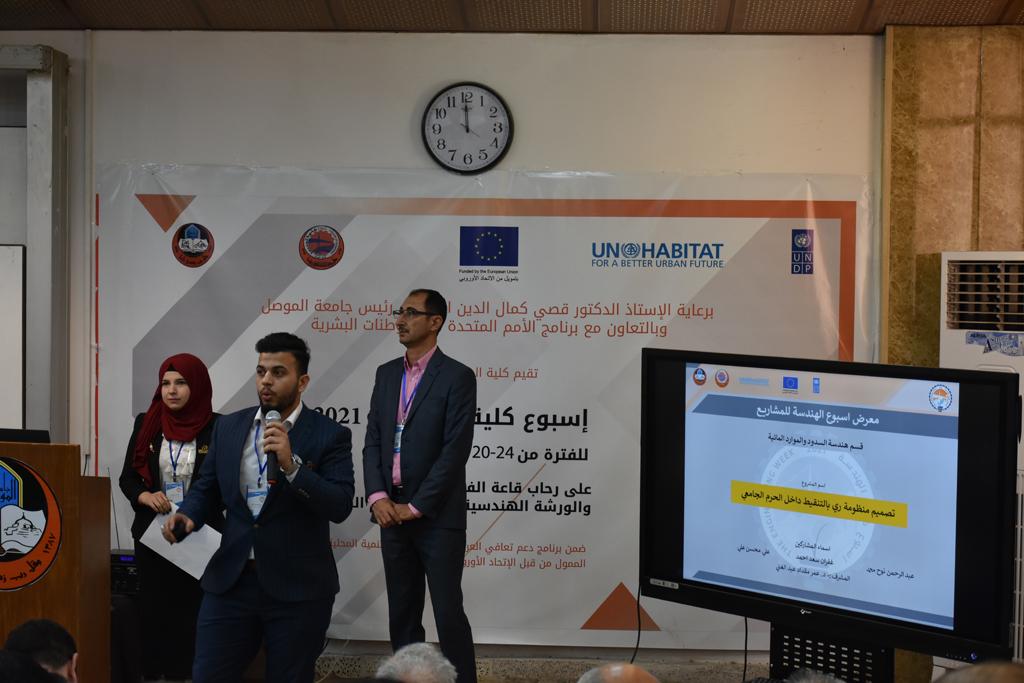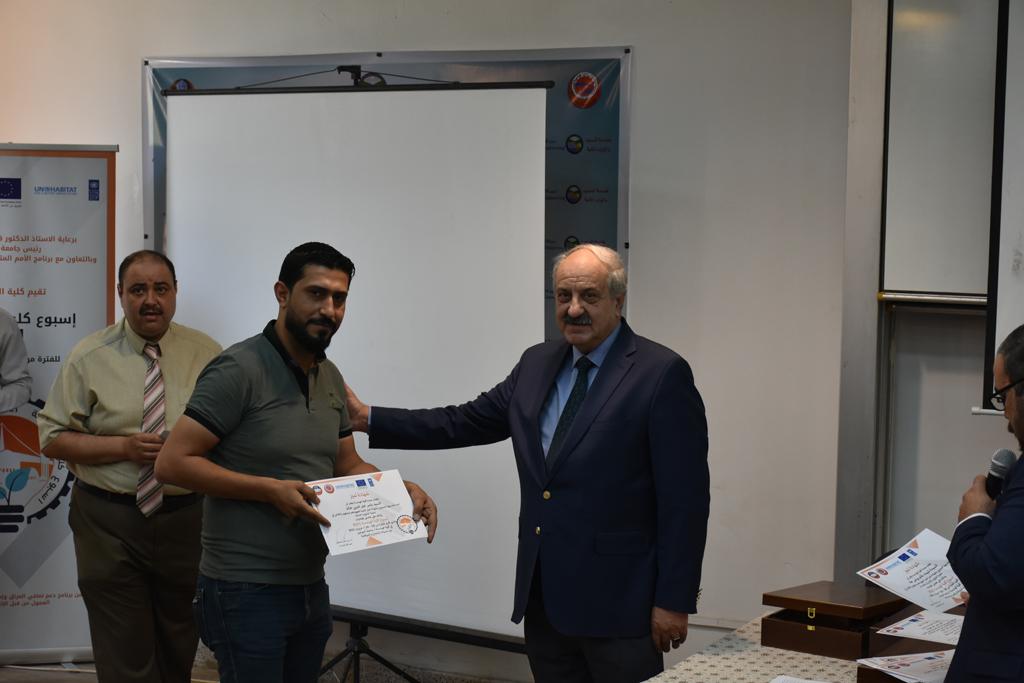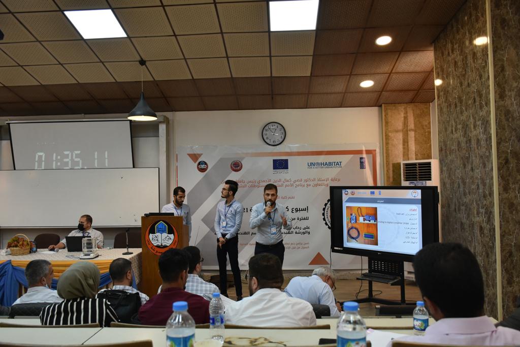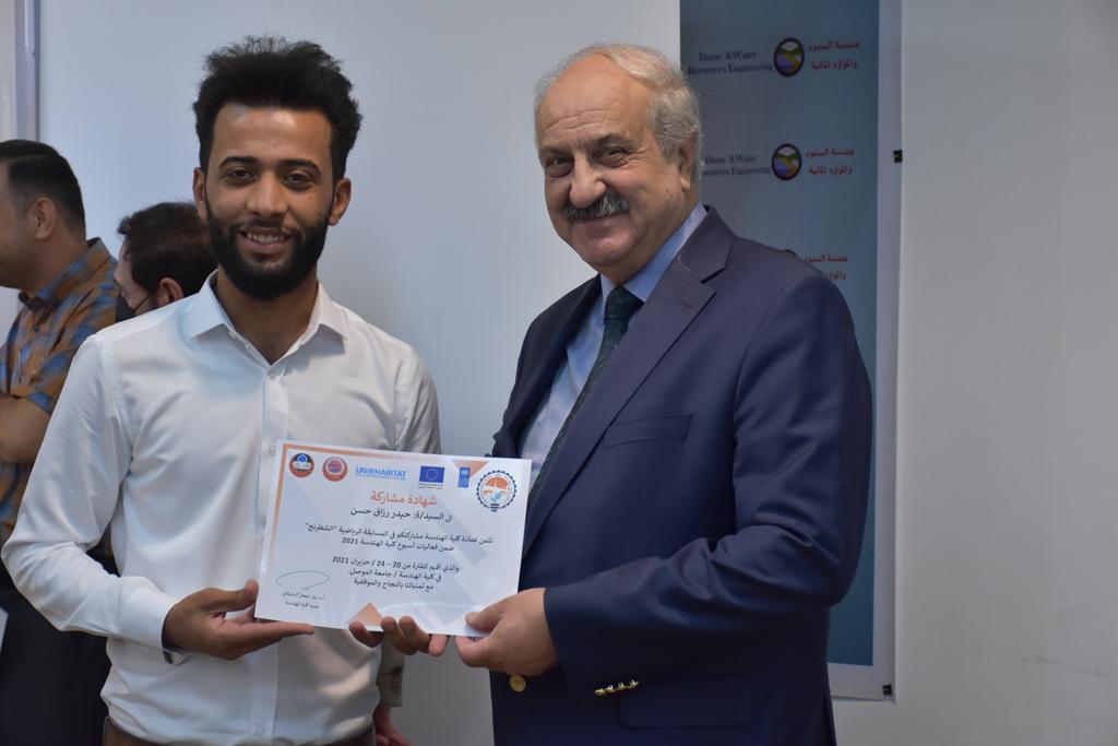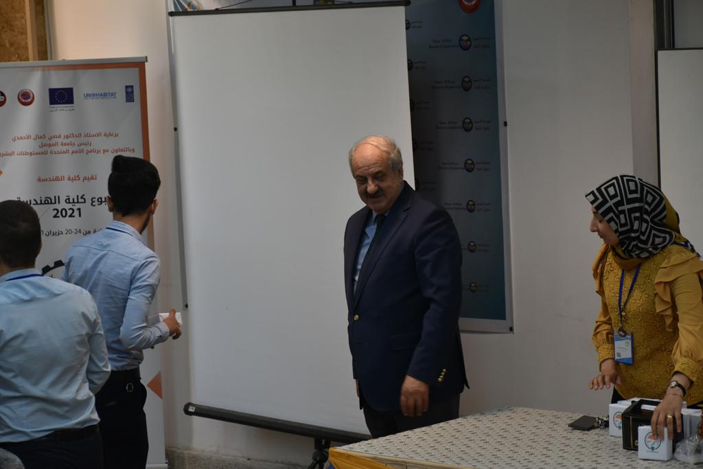 بدأت فعاليات اليوم الخامس بمحاضرة لمسؤولين من المكتب الاستشاري الهندسي هما الدكتور سعد زغلول والدكتور عدي عسل بعنوان “دور المكتب الاستشاري في المشاريع الهندسية واهميته في تطوير الخبرات وامكانيات الكادر التدريسي”. تبعتها كلمة ترحيبية الكترونية من قبل السيدة غادة حميد ممثلة الاتحاد الأوربي أشادت فيها بفعاليات الأسبوع وتمنت فيها المزيد من التعاون بين الكلية والاتحاد.عند الساعة العاشرة والنصف بدأت فعاليات التكريم لنخبة من التدريسيين المتقاعدين بحضورهم او من ينوب عنهم حيث قدم عميد كلية الهندسة الاستاذ الدكتور بيار جعفر السليفاني درع تكريم وفاءً لمسيرتهم الإدارية والتدريسية الطويلة. وهم كل من:الاستاذ المساعد محمد سليمان حسن ابراهيم الغبشةالدكتور قيدار مجيد قدو صالح قبعالدكتور ضياء علي بشير محمد النعمةالاستاذ الدكتور فاروق خليل عموري عبد الله العموريالدكتورة ايمان حازم شيت بهنامالدكتور طارق عبد الله خلفالدكتور مؤيد سعدالله خليل حياويالاستاذ الدكتور عبد الحكيم حامد احمد العزوالاستاذ الدكتور علي حيدر سعد علي الجميلالاستاذ الدكتورة حفصة رمزي محمد صديق العمريالدكتور مظفر انور النعمةالدكتور ثامر صابر يونسالاستاذ الدكتور برهان محمود احمد حسين العليالاستاذ الدكتور سعد علي حسن احمد الطعانالاستاذ الدكتور خالد عبد العزيز عبد الفتاح حسن زكريااعقبها قيام السيد العميد أيضا بتكريم أفراد المنظمة المساهمة في هذا الحدث برئاسة السيدة اننا سوافي، ثم من ينوب عن الشركات المشاركة في المعرض المفتوح ثم اللجنة التحضيرية والفرعية المنجزة لاسبوع كلية الهندسة 2021 ثم تكريم للتدريسيين والموظفين المتميزين في عمادة كلية الهندسة وكل الأقسام ثم تكريم الفائزين بالمراتب الثلاث الأولى في منافسات مسابقة الشطرنج.الفقرة الأخيرة كانت فعالية طلابية في قاعة الفرات بدأت بإستكمال مسابقة المعلومات العامة حيث كان المتسابقون من هندسة البيئة والهندسة الكهربائية، حيث فاز فريق هندسة البيئة وتم تكريمهم بجوائز.اعقبها المسابقة النهائية لمشاريع التخرج لأقسام كلية الهندسة حيث كانت المسابقة ترشيح أفضل اثنين او ثلاثة من المشاريع المشاركين بالمعرض المفتوح.المسابقة كانت ثلاث دقائق فقط لكل مشروع ليتم عرضه للجنة التحكيم ويعقبها سؤالين فقط من قبل اللجنة والجمهور ليتم معرفة قدرة الطلبة وقابليتهم على الشرح والايضاح ليتم فوز مجموعة من المشاريع بمجموعة من النقاط المحددة من قبل لجنة التحكيم بجوائز عددها عشرون جائزة.وبهذا انتهت فعاليات أسبوع كلية الهندسة 2021 بتوفيق من الله.