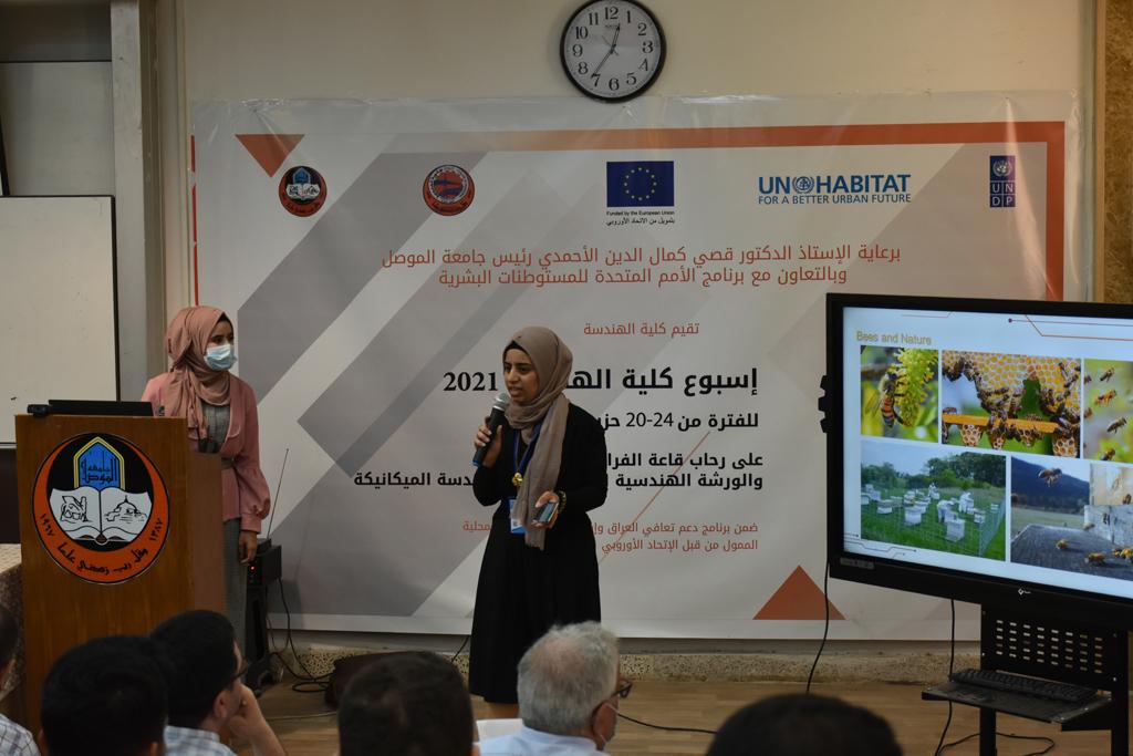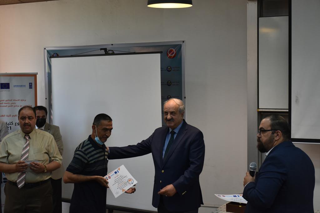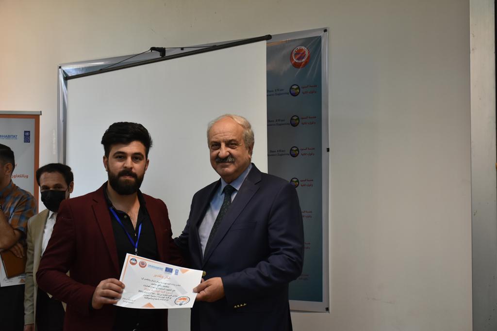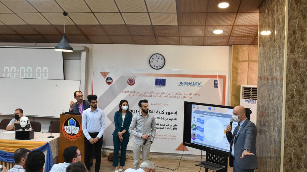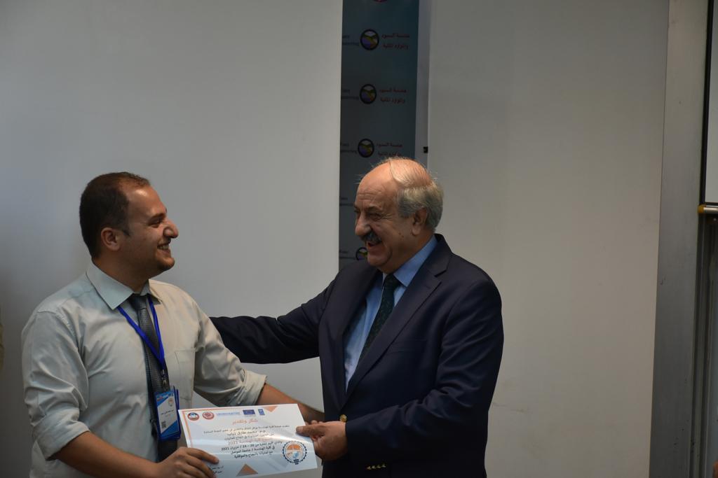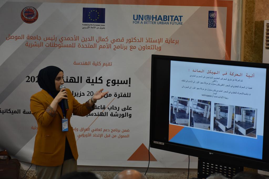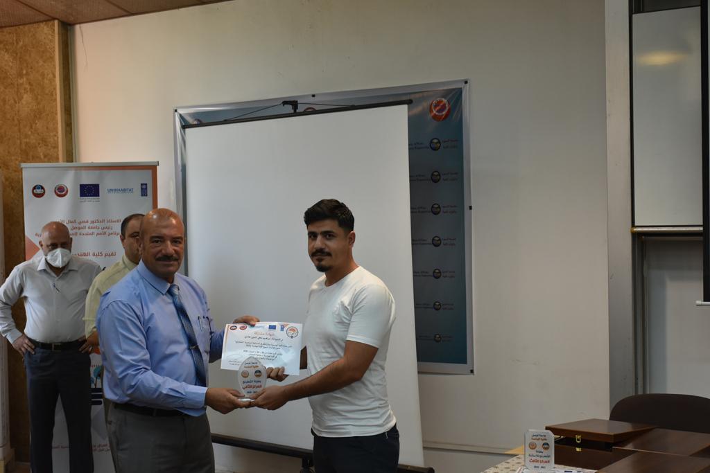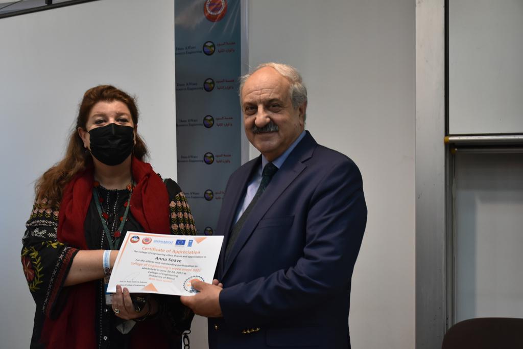 بدأت فعاليات اليوم الخامس بمحاضرة لمسؤولين من المكتب الاستشاري الهندسي هما الدكتور سعد زغلول والدكتور عدي عسل بعنوان “دور المكتب الاستشاري في المشاريع الهندسية واهميته في تطوير الخبرات وامكانيات الكادر التدريسي”. تبعتها كلمة ترحيبية الكترونية من قبل السيدة غادة حميد ممثلة الاتحاد الأوربي أشادت فيها بفعاليات الأسبوع وتمنت فيها المزيد من التعاون بين الكلية والاتحاد.عند الساعة العاشرة والنصف بدأت فعاليات التكريم لنخبة من التدريسيين المتقاعدين بحضورهم او من ينوب عنهم حيث قدم عميد كلية الهندسة الاستاذ الدكتور بيار جعفر السليفاني درع تكريم وفاءً لمسيرتهم الإدارية والتدريسية الطويلة. وهم كل من:الاستاذ المساعد محمد سليمان حسن ابراهيم الغبشةالدكتور قيدار مجيد قدو صالح قبعالدكتور ضياء علي بشير محمد النعمةالاستاذ الدكتور فاروق خليل عموري عبد الله العموريالدكتورة ايمان حازم شيت بهنامالدكتور طارق عبد الله خلفالدكتور مؤيد سعدالله خليل حياويالاستاذ الدكتور عبد الحكيم حامد احمد العزوالاستاذ الدكتور علي حيدر سعد علي الجميلالاستاذ الدكتورة حفصة رمزي محمد صديق العمريالدكتور مظفر انور النعمةالدكتور ثامر صابر يونسالاستاذ الدكتور برهان محمود احمد حسين العليالاستاذ الدكتور سعد علي حسن احمد الطعانالاستاذ الدكتور خالد عبد العزيز عبد الفتاح حسن زكريااعقبها قيام السيد العميد أيضا بتكريم أفراد المنظمة المساهمة في هذا الحدث برئاسة السيدة اننا سوافي، ثم من ينوب عن الشركات المشاركة في المعرض المفتوح ثم اللجنة التحضيرية والفرعية المنجزة لاسبوع كلية الهندسة 2021 ثم تكريم للتدريسيين والموظفين المتميزين في عمادة كلية الهندسة وكل الأقسام ثم تكريم الفائزين بالمراتب الثلاث الأولى في منافسات مسابقة الشطرنج.الفقرة الأخيرة كانت فعالية طلابية في قاعة الفرات بدأت بإستكمال مسابقة المعلومات العامة حيث كان المتسابقون من هندسة البيئة والهندسة الكهربائية، حيث فاز فريق هندسة البيئة وتم تكريمهم بجوائز.اعقبها المسابقة النهائية لمشاريع التخرج لأقسام كلية الهندسة حيث كانت المسابقة ترشيح أفضل اثنين او ثلاثة من المشاريع المشاركين بالمعرض المفتوح.المسابقة كانت ثلاث دقائق فقط لكل مشروع ليتم عرضه للجنة التحكيم ويعقبها سؤالين فقط من قبل اللجنة والجمهور ليتم معرفة قدرة الطلبة وقابليتهم على الشرح والايضاح ليتم فوز مجموعة من المشاريع بمجموعة من النقاط المحددة من قبل لجنة التحكيم بجوائز عددها عشرون جائزة.وبهذا انتهت فعاليات أسبوع كلية الهندسة 2021 بتوفيق من الله.