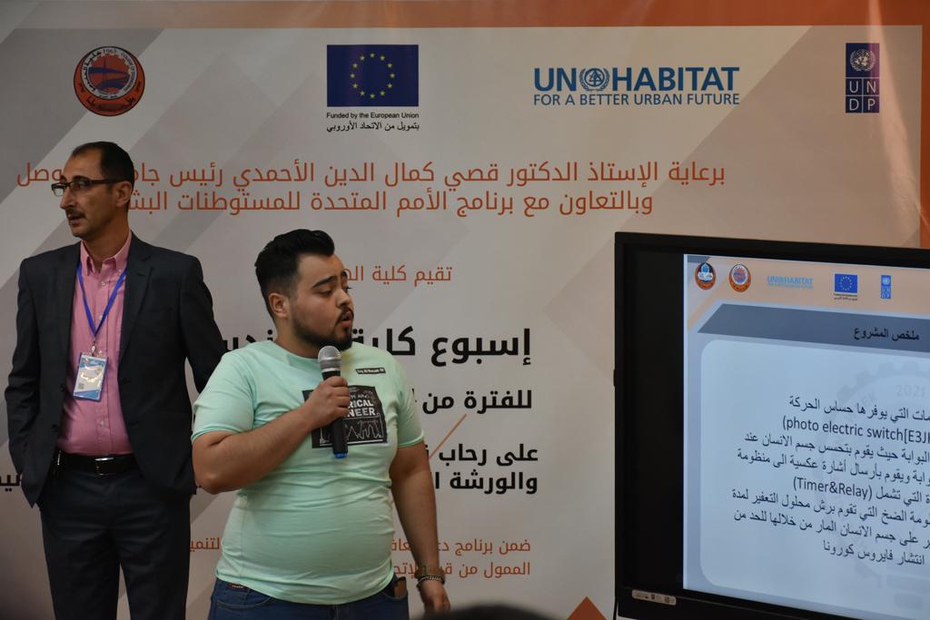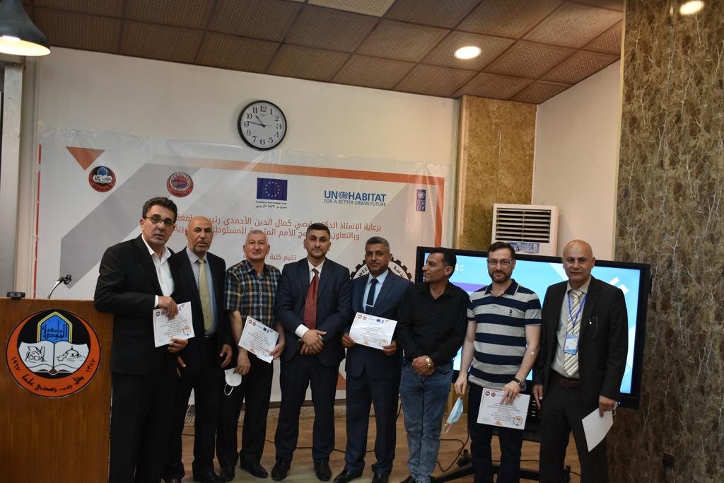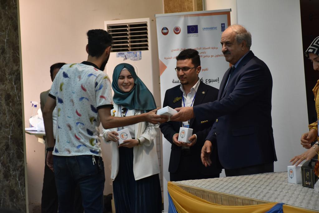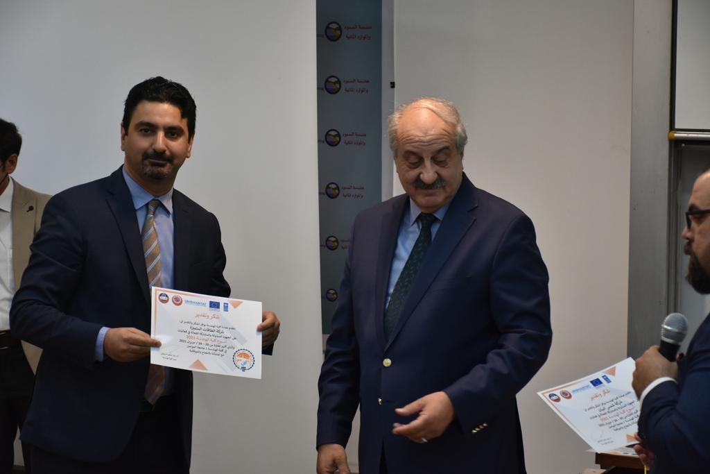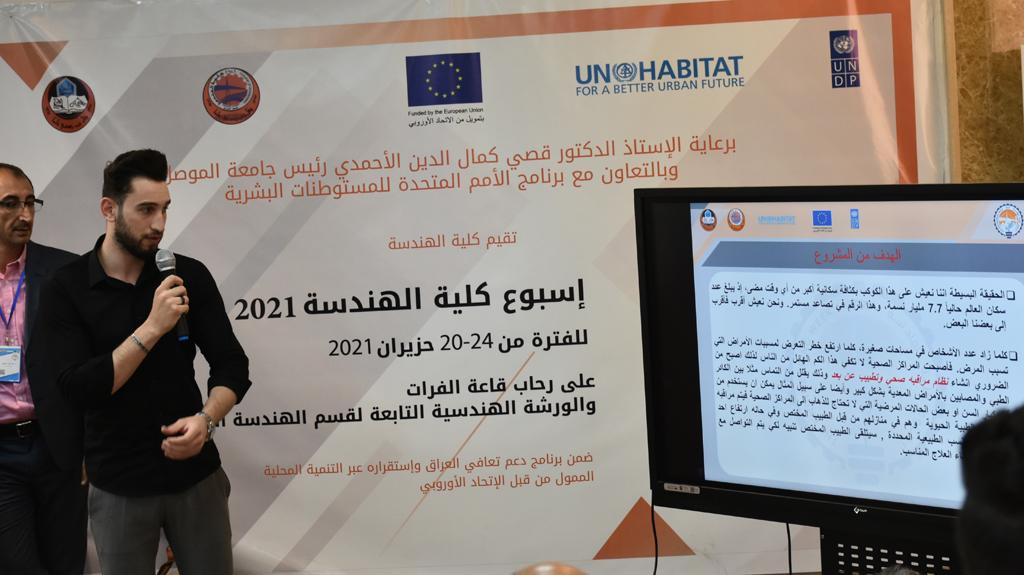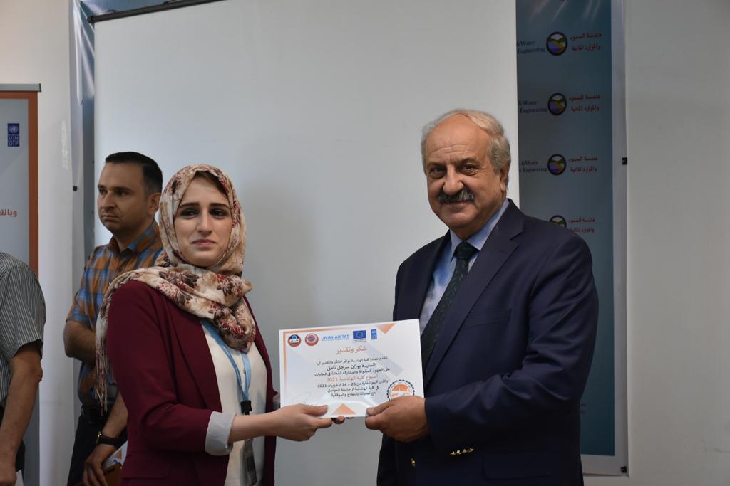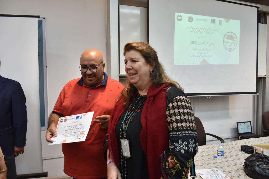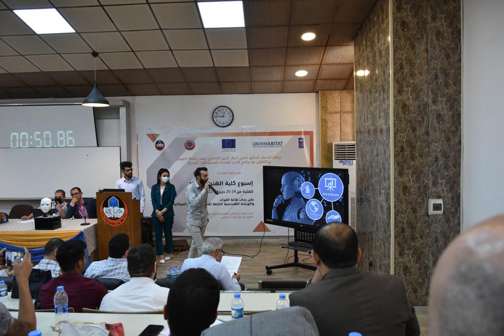 بدأت فعاليات اليوم الخامس بمحاضرة لمسؤولين من المكتب الاستشاري الهندسي هما الدكتور سعد زغلول والدكتور عدي عسل بعنوان “دور المكتب الاستشاري في المشاريع الهندسية واهميته في تطوير الخبرات وامكانيات الكادر التدريسي”. تبعتها كلمة ترحيبية الكترونية من قبل السيدة غادة حميد ممثلة الاتحاد الأوربي أشادت فيها بفعاليات الأسبوع وتمنت فيها المزيد من التعاون بين الكلية والاتحاد.عند الساعة العاشرة والنصف بدأت فعاليات التكريم لنخبة من التدريسيين المتقاعدين بحضورهم او من ينوب عنهم حيث قدم عميد كلية الهندسة الاستاذ الدكتور بيار جعفر السليفاني درع تكريم وفاءً لمسيرتهم الإدارية والتدريسية الطويلة. وهم كل من:الاستاذ المساعد محمد سليمان حسن ابراهيم الغبشةالدكتور قيدار مجيد قدو صالح قبعالدكتور ضياء علي بشير محمد النعمةالاستاذ الدكتور فاروق خليل عموري عبد الله العموريالدكتورة ايمان حازم شيت بهنامالدكتور طارق عبد الله خلفالدكتور مؤيد سعدالله خليل حياويالاستاذ الدكتور عبد الحكيم حامد احمد العزوالاستاذ الدكتور علي حيدر سعد علي الجميلالاستاذ الدكتورة حفصة رمزي محمد صديق العمريالدكتور مظفر انور النعمةالدكتور ثامر صابر يونسالاستاذ الدكتور برهان محمود احمد حسين العليالاستاذ الدكتور سعد علي حسن احمد الطعانالاستاذ الدكتور خالد عبد العزيز عبد الفتاح حسن زكريااعقبها قيام السيد العميد أيضا بتكريم أفراد المنظمة المساهمة في هذا الحدث برئاسة السيدة اننا سوافي، ثم من ينوب عن الشركات المشاركة في المعرض المفتوح ثم اللجنة التحضيرية والفرعية المنجزة لاسبوع كلية الهندسة 2021 ثم تكريم للتدريسيين والموظفين المتميزين في عمادة كلية الهندسة وكل الأقسام ثم تكريم الفائزين بالمراتب الثلاث الأولى في منافسات مسابقة الشطرنج.الفقرة الأخيرة كانت فعالية طلابية في قاعة الفرات بدأت بإستكمال مسابقة المعلومات العامة حيث كان المتسابقون من هندسة البيئة والهندسة الكهربائية، حيث فاز فريق هندسة البيئة وتم تكريمهم بجوائز.اعقبها المسابقة النهائية لمشاريع التخرج لأقسام كلية الهندسة حيث كانت المسابقة ترشيح أفضل اثنين او ثلاثة من المشاريع المشاركين بالمعرض المفتوح.المسابقة كانت ثلاث دقائق فقط لكل مشروع ليتم عرضه للجنة التحكيم ويعقبها سؤالين فقط من قبل اللجنة والجمهور ليتم معرفة قدرة الطلبة وقابليتهم على الشرح والايضاح ليتم فوز مجموعة من المشاريع بمجموعة من النقاط المحددة من قبل لجنة التحكيم بجوائز عددها عشرون جائزة.وبهذا انتهت فعاليات أسبوع كلية الهندسة 2021 بتوفيق من الله.