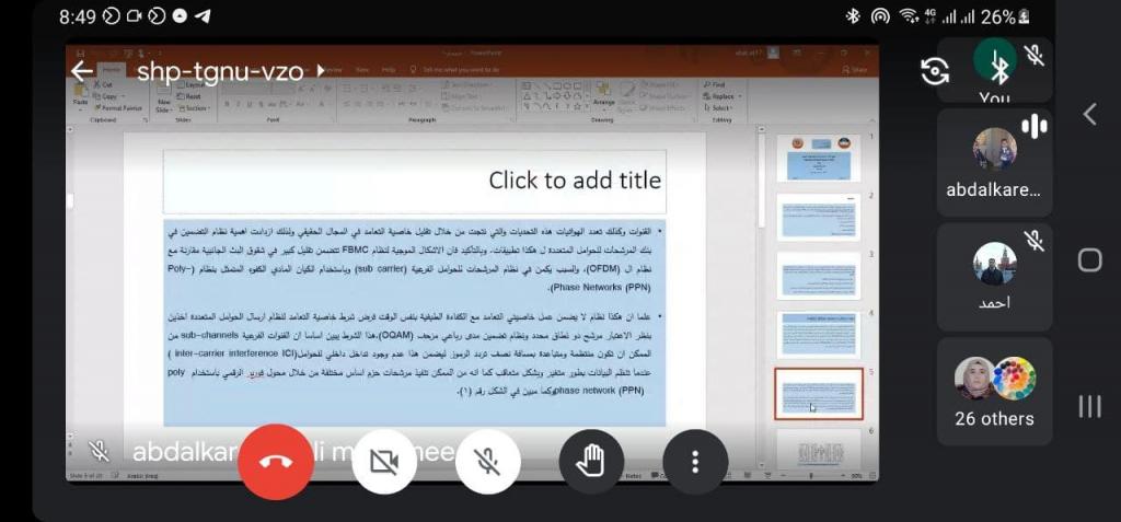 أقام قسم الهندسة الكهربائية بكلية الهندسة في جامعة الموصل حلقتين نقاشيتين يوم الثلاثاء الموافق ١٦-٢-٢٠٢١ لطلبة الدراسات العليا في مرحلة البحث … تم خلالهما تدريب الطلبة على الالقاء والمناقشة وهي ضمن فعاليات القسم لتدريب طلبة الدراسات العليا.