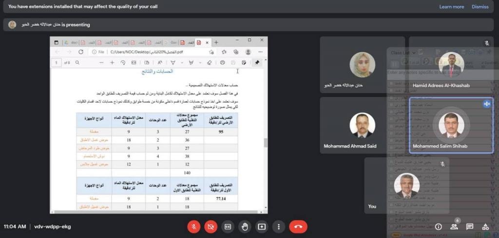 قسم هندسة البيئة يجري المناقشة الأولية لمشاريع طلبته في المرحلة الرابعة