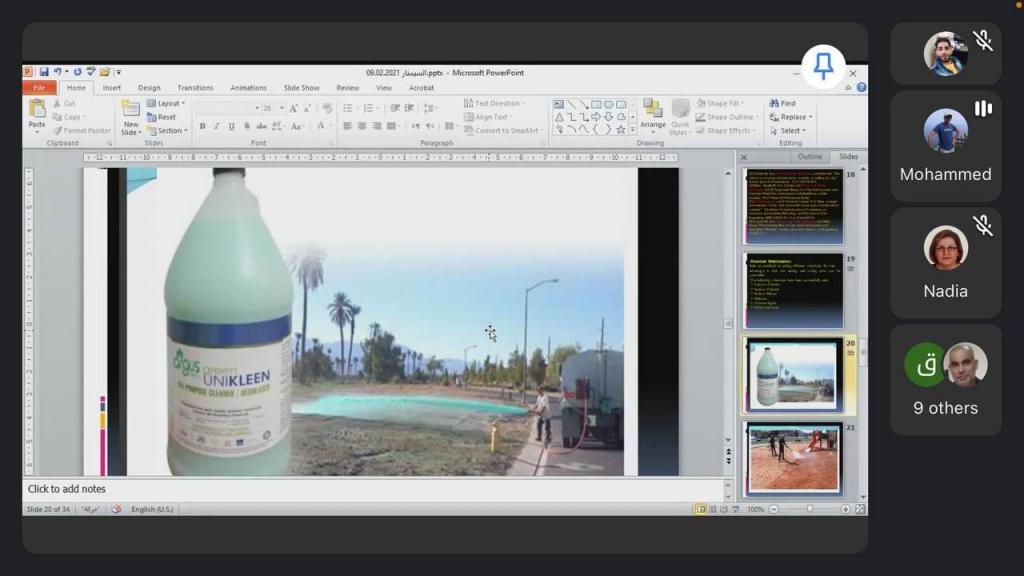 يواصل قسم هندسة البيئة في كلية الهندسة بجامعة الموصل تقديم الحلقات النقاشية ضمن برنامج القسم الذي يهدف الى اعادة المعلومات وتحديثها وفي هذا السياق القى الدكتور محمد ظافر التدريسي في القسم محاضرة تحت عنوان (تثبيت الترب الطينية) على منصة الواقع الافتراضي google meet بتاريخ 2021/02/09 حضرها عدد من تدريسيي القسم وفي نهاية المحاضرة دارت بين المحاضر و المشاركين مداخلات ومناقشات رصينة اثرت الموضوع.