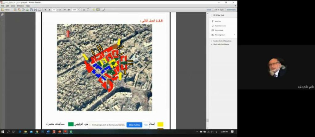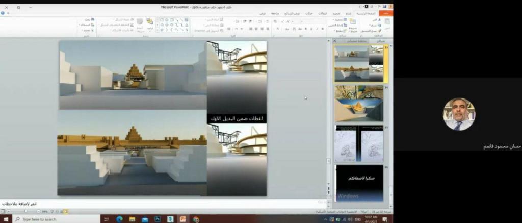 بإشراف الاستاذ المساعد الدكتور أحمد يوسف العمري رئيس قسم هندسة العمارة في كلية الهندسة ومتابعته تم في القسم مناقشة طلبة المرحلة الخامسة لمادة أطروحة مشروع التخرج وذلك على مدى يومي الأربعاء والخميس الموافقين ٣١/٣ و ١/٤ من خلال منصة meet ….. وقد تم تقسيم الطلاب إلى ثلاث مجاميع وفق نوعية المشاريع التي كلفوا بإنجازها حيث قامت بمناقشتهم لجان تضم كلا من: