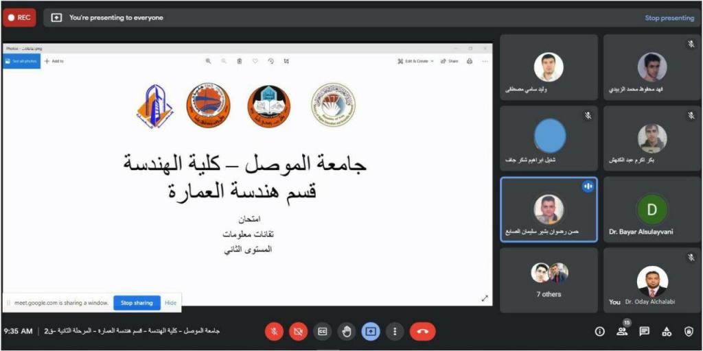 بدأت صباح اليوم (السبت) الموافق 2021/7/17 الامتحانات النهائية النظرية المقامة الكترونيا في اقسام كلية الهندسة بجامعة الموصل وسط اقبال تام للطلبة وتنظيم دقيق من قبل عمادة الكلية عبر المنصات الالكترونية.