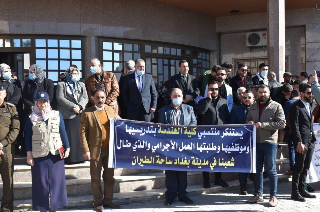 شارك منتسبي كلية الهندسة في وقفة الحداد التي اقامتها جامعة الموصل وتأبين وصلاة غائب ترحماً على أرواح شهداء الخميس الدامي في ساحة الطيران ببغداد صباح يوم الأحد الموافق 24 كانون الثاني 2021، أمام مبنى رئاسة الجامعة لأداء صلاة الغائب ورفع لافتات التأبين مؤازرة لإخوانهم من ذوي الشهداء في حادثة ساحة الطيران الأليمة مستنكرين العمل الاجرامي الذي ارتكبته العصابات الإجرامية بحق أبناء الشعب الواحد .