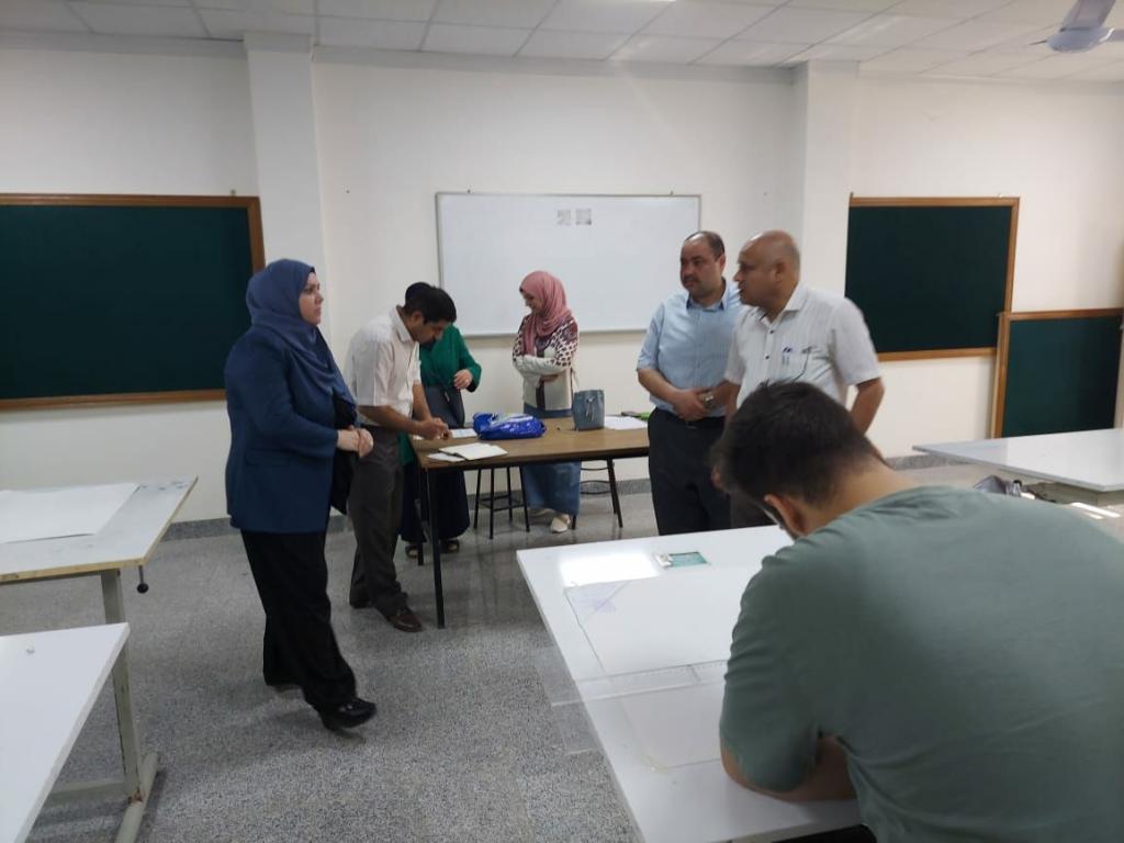 بعد إكمال الأستعدادات والتهيئ المبكر لأمتحانات الدور الثاني. تم وعلى بركة الله البدء بإمتحانات الدور الثاني للدراسة الإولية للعام الدراسي 2021-2022 للمراحل التي تعمل بالنظام السنوي في كلية الهندسة يوم الاحد الموافق 4/9/ 2022. تفقدا السيد عميد الكلية والسادة المعاونين المحترمون سير الإمتحانات في القاعات الدراسية والإجواء الأمتحانية التي تم إعدادها لإكمال الإمتحان على أفضل وجه. وقد تم الاشادة بحسن التهيئة والإعداد للأمتحانات وأتسام أسئلة الإمتحان بشمولها للمادة الدراسية التي تلقاها الطلبة خلال العام الدراسي مع التمنيات لطلبتنا الاعزاء بالموفقية والنجاح.