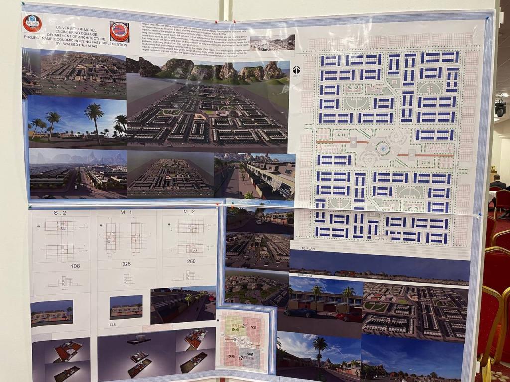 تضمن المعرض على مشاريع حيوية لمدينة الموصل وعدد من اقضية محافظة نينوى ضمن خطة جامعة الموصل في خدمة المجتمع واسهاما من قسم هندسة العمارة في حل المشاكل العمرانية للمدن العراقية على اسس علمية ورؤية فنية معاصرة تؤطر لهوية معمارية محلية وتراعي مبادئ الاستدامة البيئية وباشراف اساتذة متخصصين في التصميم المعماري والحضري.