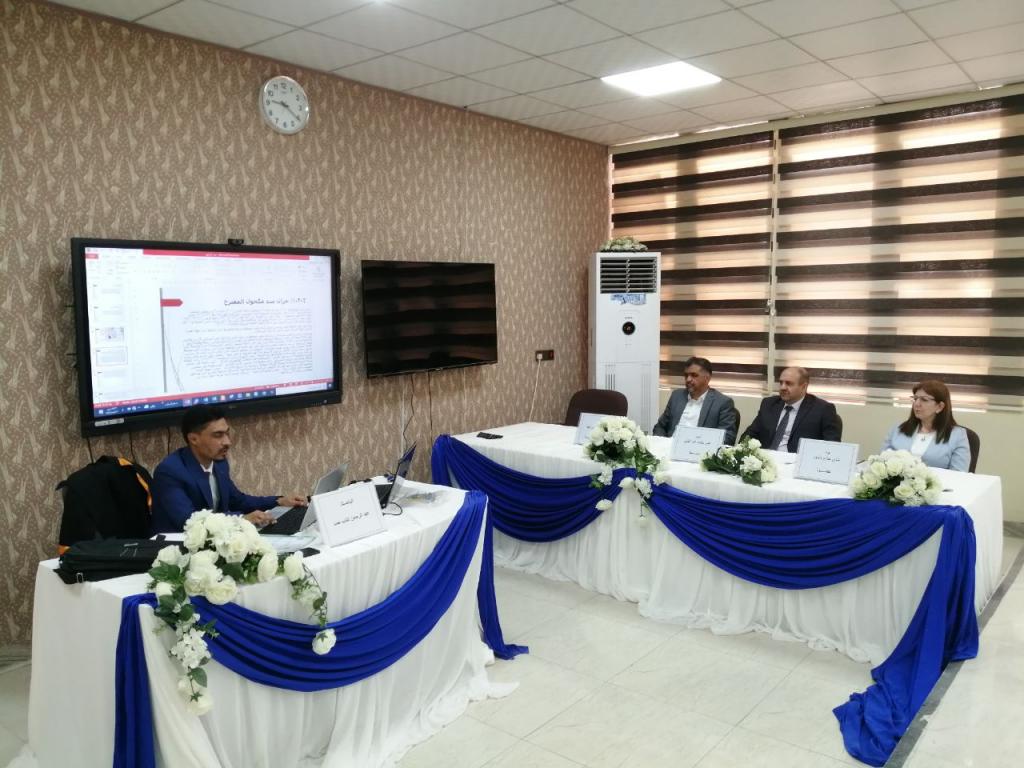 مناقشة بحث دبلوم في قسم هندسة السدود والموارد المائية عن أداء خزان سد مكحول مع سدة سامراء