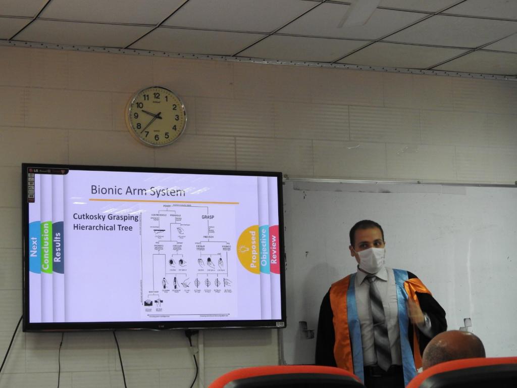 مناقشة رسالة ماجستير في كلية الهندسة – جامعة الموصل بعنوان : اليد الاصطناعية الذكية الهجينة للمعاقين