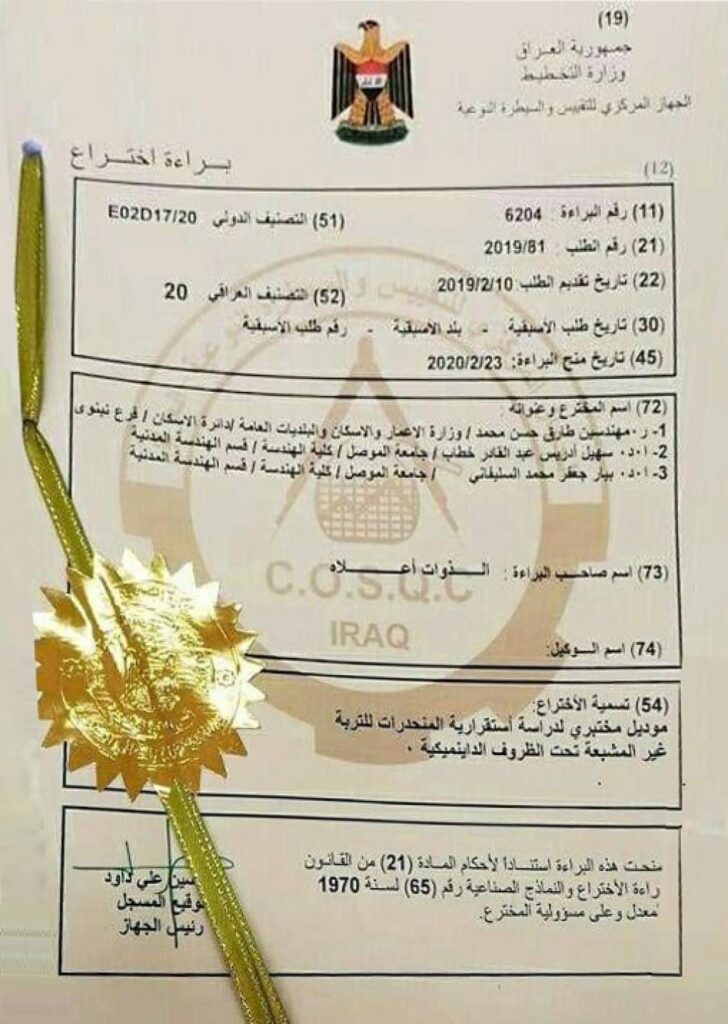 سيتم بعونه تعالى إجراء مناقشة إطروحه الدكتوراه بإختصاص الجيوتكنيك للطالب (طارق حسن محمد) والموسومة ب (تحليل إستقرارية المنحدر للتربة غير المشبعة تحت الظروف الديناميكية) وذلك في يوم الثلاثاء المصادف (5/5/2020) وعلى قاعة المناقشات في قسم الهندسة المدنية.