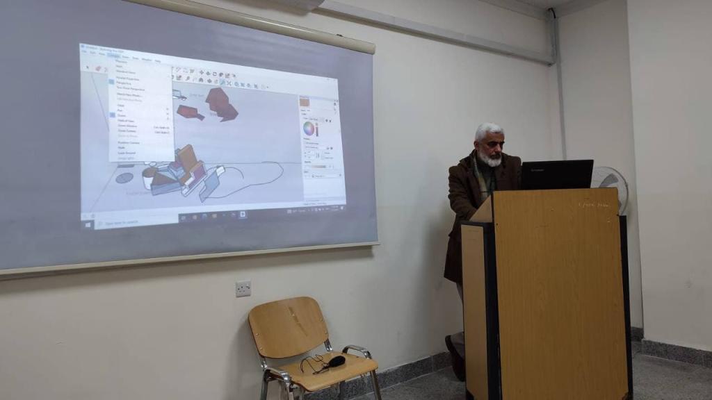 بناءا على توجيهات رئاسة جامعة الموصل متمثلة برئيسها الاستاذ الدكتور قصي كمال الدين الاحمدي المحترم في تقديم الخدمات للمجتمع، فقد قامت كلية الهندسة-قسم هندسة العمارة بأولى المحاضرات المجانية لتنمية المهارات لموظفي ديوان محافظة نينوى/ معاونية الاعمار / ادارة المشاريع، عن برنامج “sketch up” الخاص برسم وانشاء المجسمات الهندسية الاحترافية، في قسم هندسة العمارة يوم الاربعاء الموافق 22 / 2 / 2023.يذكر ان كلية الهندسة استجابات لطلبات دوائر ومؤسسات الدولة باقامة محاضرات مجانية بتخصصات هندسية معينة لزيادة كفاءة العاملين وتكامل تواصلهم العلمي والمعرفي. وايضا تهدف كليتنا بالوقوف على متطلبات سوق العمل الحالي ضمن سلسة المحاضرات التي اعدتها كلية الهندسة خدمة للمجتمع.تناولت المحاضرة اهم اساسيات برنامج sketch up وطريقة رسم المجسمات وتحويل الاشكال ثنائية الابعاد الى مجسمات ثلاثية الابعادحاضر فيها كل من أ.م. عماد هاني وم.م. راوية مروان وم.م. وليد سامي.