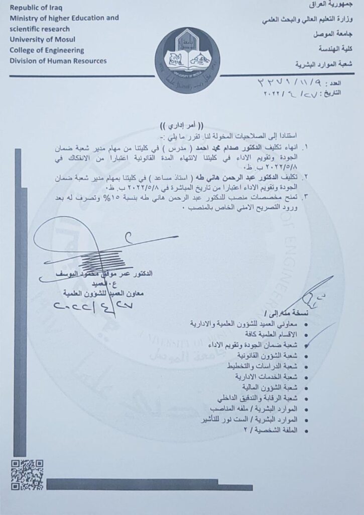 اقيمت في الاربعاء الموافق 27/4/2022 وعلى قاعة المناقشات في قسم هندسة الميكاترونكس ورشة عمل قدمها أ.م.د. لؤي بشير يونس، رئيس لجنة الجودة في القسم، حول المعايير الوطنية لإعتماد التعليم الهندسي، حيث تم استعراض كافة التفاصيل والفقرات اللازمة لتطبيق معايير الإعتماد المطلوبة من الاقسام العلمية واهمها هو كيفية تطوير نظام التعليم الجامعي في الدراسة النظرية والعملية داخل المختبرات وللدراسات العليا والأولية، تم اجراء الورشة بحضور السيد رئيس القسم واعضاء الهيئة التدريسية لقسم هندسة الميكاترونكس.