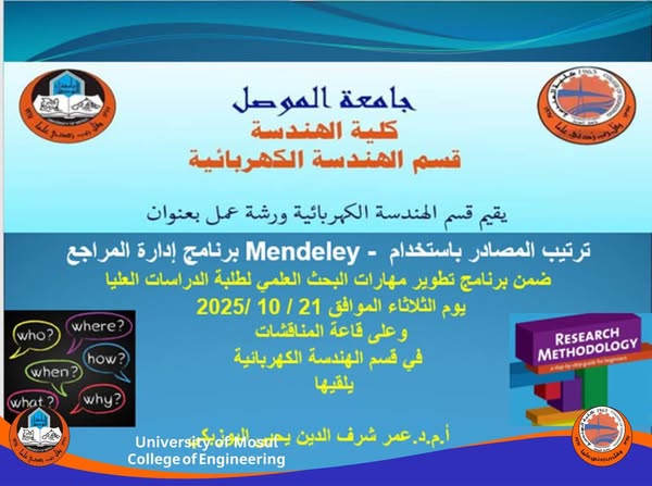 ضمن النشاطات العلمية لكلية الهندسة قسم هندسة السدود والموارد المائية بجامعة الموصل وحرصها على تحقيق أهداف التنمية المستدامة لاسيما الهدف الرابع "التعليم الجيد" أقام قسم [إقرأ المزيد]