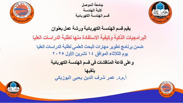 ضمن النشاطات العلمية لكلية الهندسة وفي اطار سعيها لتحقيق اهداف التنمية المستدامة ومنها الهدف الرابع " التعليم الجيد"، نظم قسم الهندسة الكهربائية يوم الثلاثاء الموافق [إقرأ المزيد]
