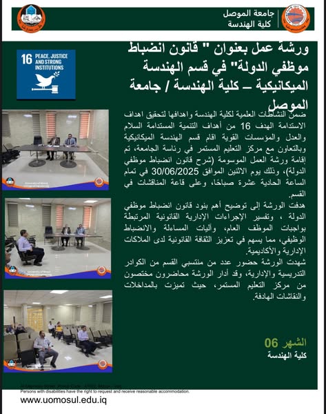 ضمن النشاطات العلمية لكلية الهندسة واهدافها لتحقيق اهداف الاستدامة الهدف 16 من أهداف التنمية المستدامة السلام والعدل والمؤسسات القوية اقام قسم الهندسة الميكانيكية وبالتعاون مع [إقرأ المزيد]
