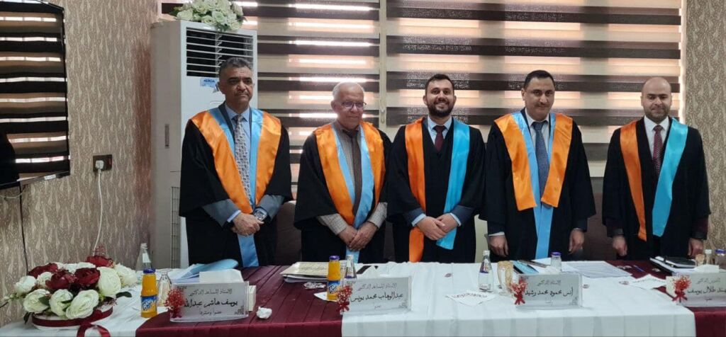 ترأس لجنة المناقشة الأستاذ المساعد الدكتور فاروق مجيد مهوس/ جامعة تكريت- كلية الهندسة، وبعضوية كل من الأستاذ المساعد الدكتور موفق عبو عواد والدكتور محمد ناظم جارو بإشراف وعضوية الأستاذ الدكتور معتز عبدالجبار العبيدي.