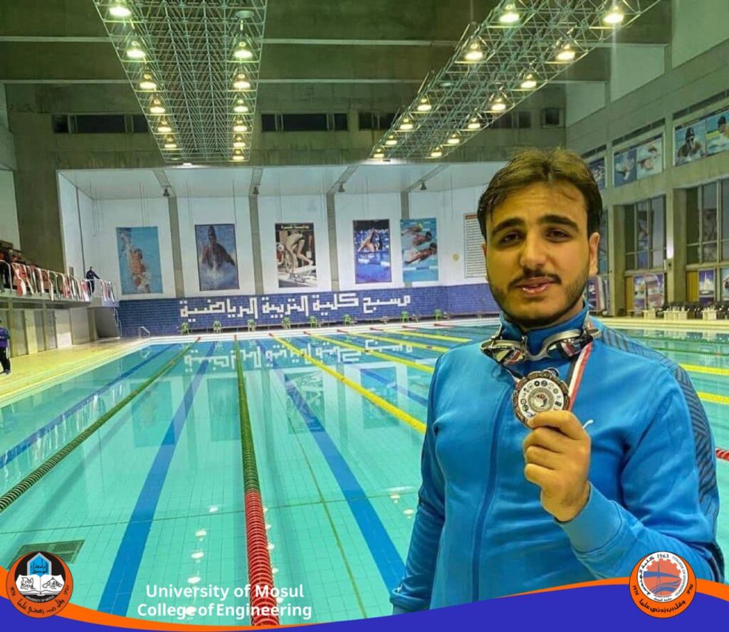 طالب من كلية الهندسة يحقق المركز الثالث في بطولة السباحة الاولمبية