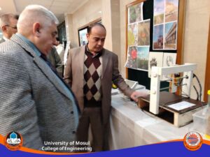 افتتح المعرض السيد مساعد رئيس جامعة الموصل للشؤون العلمية الاستاذ الدكتور منير سالم طه، يرافقه السيد عميد كلية الهندسة الاستاذ الدكتور عبد الرحيم ابراهيم جاسم وبحضور السيد رئيس قسم هندسة العمارة الاستاذ المساعد الدكتور عمر حازم خروفة والسيد رئيس قسم الهندسة الكهربائية الاستاذ المساعد الدكتور محمد طارق ياسين.