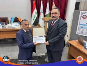 تم تسليم شهادة تقديرية من قِبل رئيس قسم الهندسة الكهربائية الاستاذ المساعد الدكتور محمد طارق ياسين الى المدرس الدكتور فارس طه حسن / جامعة الكتاب / كركوك.