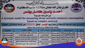 ضمن اطار التعاون العلمي بين كلية الهندسة وكليات جامعة الموصل الاخرى، شارك رئيس قسم هندسة الحاسوب الاستاذ الدكتور صلاح عبدالغني العبادي يوم الخميس الموافق 2025/4/24 كعضو لجنة مناقشة اطروحة دكتوراه علوم الحاسوب /كلية علوم الحاسوب والرياضيات /جامعة الموصل للطالب احمد ياسين كامل يونس و الموسومة (نموذج ديناميكي لقياس استهلاك مصادر شبكات الطائرات بدون طيار استناداً الى الشبكات المعقد)