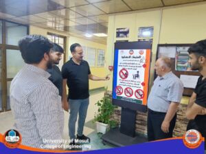 اقامت كلية الهندسة ( لجنة انضباط الطلبة , وشعبة الاعلام والاتصال الحكومي , وشعبة الارشاد النفسي والتوجيه التربوي ) حملة توعوية شاملة لطلبتها استعدادًا لأداء الامتحانات النهائية، بإشراف السيد عميد الكلية، الأستاذ المساعد الدكتور عمر محمد حمدون يوم الاحد الموافق 4 ايار 2025 بهدف توعيتهم بالتعليمات الامتحانية الواجب اتباعها.