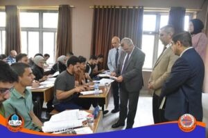 تفقد السيد مساعد رئيس الجامعة للشؤون العلمية الاستاذ الدكتور عبدالرحيم ابراهيم جاسم، قسم الهندسة المدنية في كلية الهندسة، يوم الثلاثاء الموافق 6 آيار 2025 يرافقه الاستاذ المساعد الدكتور عمر محمد حمدون/ عميد كلية الهندسة والاستاذ المساعد الدكتور ايمن طالب حميد/ معاون العميد للشؤون العلمية لمتابعة سير الامتحانات النهائية لطلبة الدراسات الاولية، حيث تفقد القاعات الإمتحانية وإطلع على طبيعة الأسئلة وسير العملية الإمتحانية والخدمات المقدمة للطلبة، موكدا اهمية تهيئة بيئة مناسبة لضمان اداء اكاديمي ناجح .