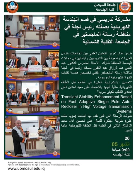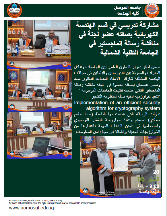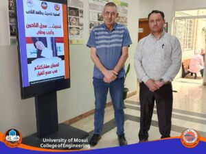 برعاية السيد رئيس جامعة الموصل الاستاذ الدكتور وحيد محمود الابراهيمي واشراف السيد عميد كلية الهندسة الاستاذ المساعد الدكتور عمر محمد حمدون, وفي إطار السعي لتعزيز الوعي باهداف التنمية المستدامة، ومنها الهدف السادس عشر، السلام والعدل والمؤسسات القوية، اقامت شعبة الاعلام والاتصال الحكومي في كليتنا، حملة توعوية بعنوان “اهمية تحديث بطاقة الناخب”، تحت شعار “تحديث سجل الناخبين واجب وطني لضمان مشاركتكم في صنع القرار” يوم الاربعاء الموافق 21 ايار 2025.