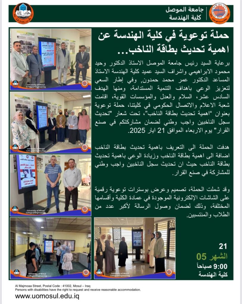 ضمن اطار تعزيز التعاون العلمي بين الجامعات وتبادل الخبرات والمعرفة بين التدريسيين والباحثين في مجالات الهندسة المختلفة شارك الاستاذ المساعد الدكتور سعد وسمي عصمان بصفته عضوا في لجنة مناقشة رسالة الماجستير التقني هندسة تقنيات الحاسبات الموسومة “تنفيذ خوارزمية امنية فعالة لمنظومة التشفير”.