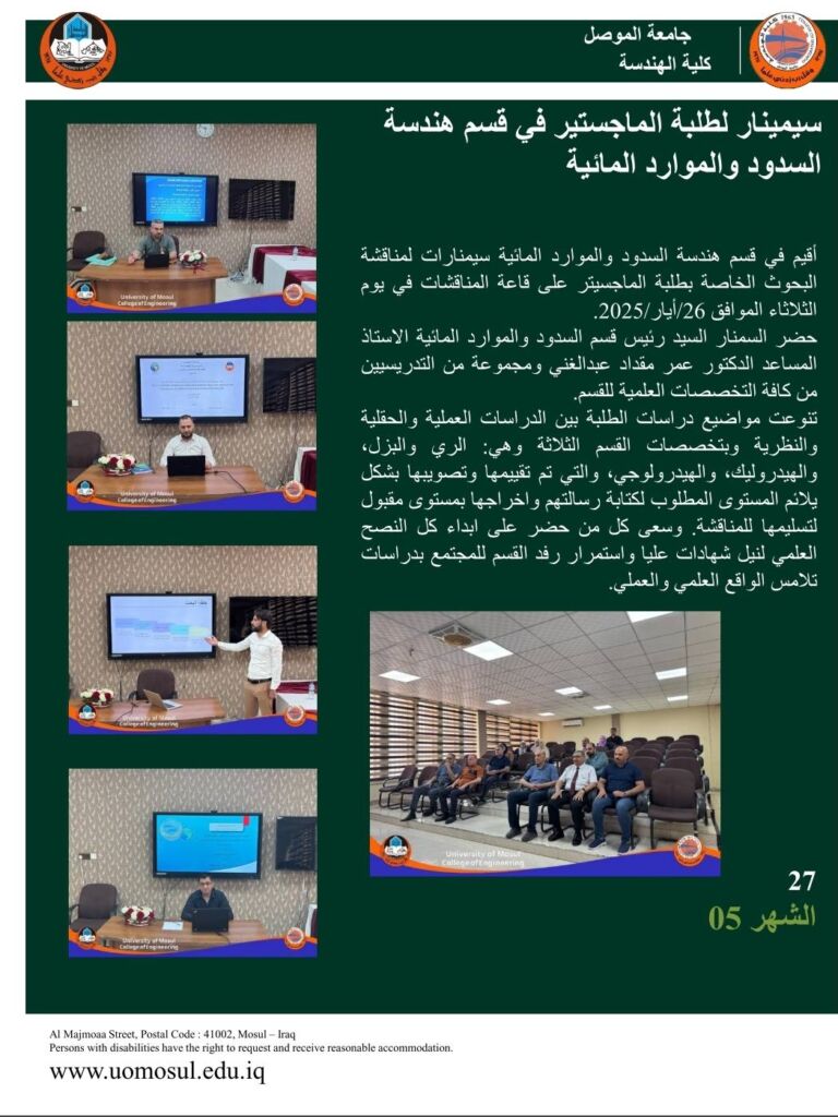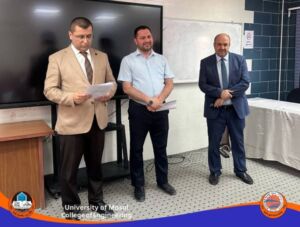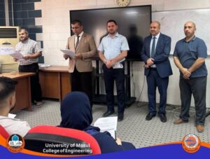 بحضور السيد عميد كلية الهندسة الاستاذ المساعد الدكتور عمر محمد حمدون والسيد رئيس قسم الهندسة الميكاترونكس الاستاذ المساعد الدكتور اوس حازم صابر، اجتمع يوم الاثنين الموافق 26 ايار 2025 أعضاء لجنة الاعتماد البرامجي مع طلبة المستوى الرابع وتم اجراء استبيان التخرج لتقييم الاهداف المتحققة من مخرجات التعلم لنيل شهادة بكالوريوس في اختصاص هندسة الميكاترونكس.