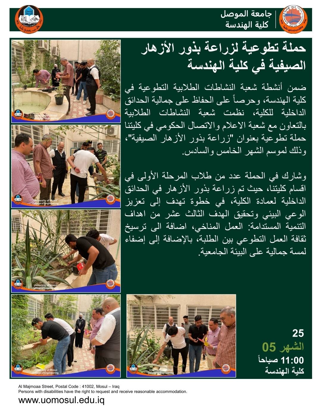 حملة تطوعية لزراعة بذور الأزهار الصيفية في كلية الهندسة