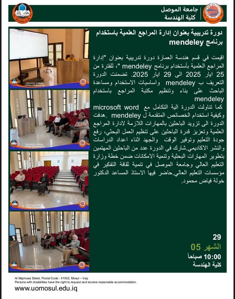 دورة تدريبية في قسم هندسة العمارة عن إدارة المراجع العلمية باستخدام برنامج Mendeley