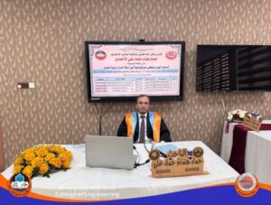 حضر المناقشة الاستاذ المساعد الدكتور عمر مقداد عبد الغني/ رئيس قسم هندسة السدود والموارد المائية وعدد من تدريسي القسم.