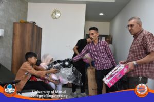 وخلال الزيارة، التقى وفد الكلية بالدكتور مدين محمد فوزي، مدير مستشفى الحدباء التخصصي لأمراض الدم وزرع نخاع العظم . بدوره أشاد الدكتور مدير المستشفى بالدعم المتواصل من قبل كلية الهندسة لخدمة المجتمع وتقديم يد العون لمن هم بحاجة لذلك ، و تم خلال الزيارة تقديم مجموعة من الهدايا والعاب الأطفال للمرضى الراقدين، في مبادرة إنسانية تهدف إلى رفع معنوياتهم وإدخال البهجة إلى نفوسهم ونفوس ذويهم. كما تم توفير بعض المستلزمات الطبية المتاحة، دعماً لهذه الشريحة التي هي بحاجة الى دعم معنوي مميز للانطلاق نحو الشفاء العاجل ان شاء الله.