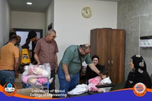 وخلال الزيارة، التقى وفد الكلية بالدكتور مدين محمد فوزي، مدير مستشفى الحدباء التخصصي لأمراض الدم وزرع نخاع العظم . بدوره أشاد الدكتور مدير المستشفى بالدعم المتواصل من قبل كلية الهندسة لخدمة المجتمع وتقديم يد العون لمن هم بحاجة لذلك ، و تم خلال الزيارة تقديم مجموعة من الهدايا والعاب الأطفال للمرضى الراقدين، في مبادرة إنسانية تهدف إلى رفع معنوياتهم وإدخال البهجة إلى نفوسهم ونفوس ذويهم. كما تم توفير بعض المستلزمات الطبية المتاحة، دعماً لهذه الشريحة التي هي بحاجة الى دعم معنوي مميز للانطلاق نحو الشفاء العاجل ان شاء الله.