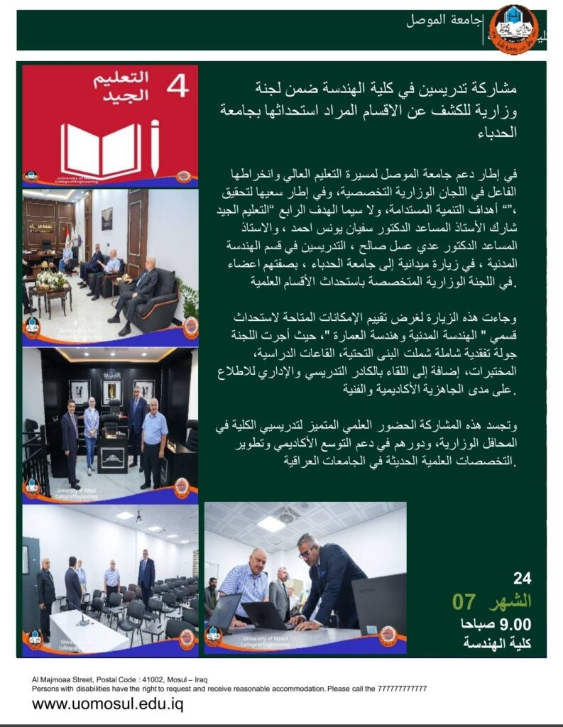 على المتقدمين للدراسات العليا في كلية الهندسة للعام الدراسي ٢٠٢٦/٢٠٢٥ على قناة القبول العام وقناة الامتيازات (الناجحين حصراً) والراغبين بالتدوير الى قناة النفقة الخاصة لاشغال المقاعد الشاغرة (والمبين تفاصيلها بالملف المرفق) ارسال طلبات التدوير الى الاميل الرسمي الخاصة بشعبة شؤون الدراسات العليا/كلية الهندسة والمرفق ادناه للفترة من ٢٠٢٥/٧/٢٧ ولغاية ٢٠٢٥/٧/٣١ .