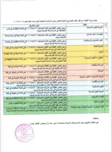مع ضرورة الإطلاع على الجدول أدناه الخاص بمواعيد ومكان عقد الاجتماع.
