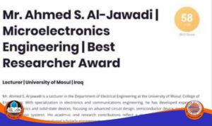 وقد جاء هذا التكريم نتيجة للنشر العلمي المتميز في مجلات دولية رصينة مصنفة ضمن المستوعبات العالمية Scopus و Springer ومن ضمنها مجلات Silicon و E-Prime المصنفتان في المراتب الأولى.