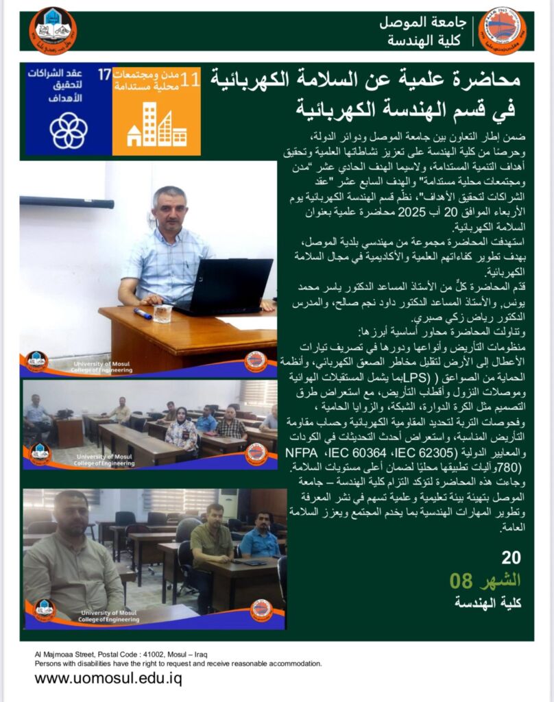 ناقشت كلية الهندسة / قسم الهندسة الميكانيكية في جامعة الموصل رسالة ماجستير موسومة ” تأثير توقيت شرارة القدح في محركات الإحتراق بالشرارة على الأداء والإنبعاثات بأنواع مختلفة من وقود الكازولين ” وذلك في تمام الساعة التاسعة صباحا” يوم الخمبس الموافق 2025/8/21 .