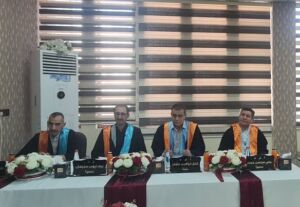 ترأس لجنة المناقشة الأستاذ المساعد الدكتور خليل ابراهيم عثمان (جامعة الموصل/مركز بحوث السدود والموارد المائية)، وبعضوية كل من الاستاذ المساعد الدكتور علي محسن حيدر(جامعة الكوفة/كلية الهندسة)، والمدرس الدكتور زياد ايوب سليمان (جامعة الموصل/ كلية الهندسة)، وبإشراف وعضوية الاستاذ احمد يونس محمد.