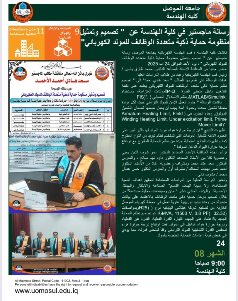 ترأس لجنة المناقشة الأستاذ الدكتور مازن برهان الدين عبدالرحمن من كلية الهندسة جامعة تكريت، وبعضوية كل من الاستاذ الدكتور ايثار ذنون داؤد من الجامعة التقنيةالشمالية/ كلية التقنية الهندسية في الموصل، والاستاذ الدكتور صهيب يحيى قاسم ، والاستاذ المساعد الدكتور جاسم علي عبدالله، والاستاذ المساعد الدكتور عدي عسل صالح،وبأشراف وعضوية الاستاذ المساعد الدكتور سفيان يونس احمد مشرفا اول، والاستاذ المساعد الدكتور ربيع مؤيد نجم مشرفا ثاني.