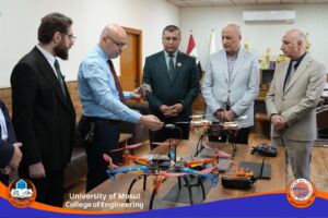 حيث اطّلعوا على المشروع العلمي المبتكر من قبل الباحثين في أقسام هندسة الحاسوب وهندسة الميكاترونكس والهندسة الكهربائية والمتمثل بطائرة الدرون،واستمع الحضور الى شرح مفصل من فريق الباحثين حول فكرة المشروع وأهدافه المستقبلية، إضافة إلى الخدمات التي يمكن أن يقدمها للمجتمع والمؤسسات المختلفة في الدفاع المدني والانقاذ وقياس بصمة الكاربون.