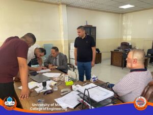 استمرارًا لجهود عمادة كلية الهندسة في جامعة الموصل للارتقاء بالعمل الأكاديمي والإداري، قام الأستاذ المساعد الدكتور عمر محمد حمدون، عميد كلية الهندسة، وبرفقته الدكتور بسام إحسان الحافظ، معاون العميد للشؤون الإدارية، والسيد أحمد فتحي والسيد مصعب عبدالجبار من شعبة الرقابة الداخلية، بجولة ميدانية في أقسام الكلية لمتابعة مباشرة الكوادر التدريسية للعام الدراسي 2026/2025.